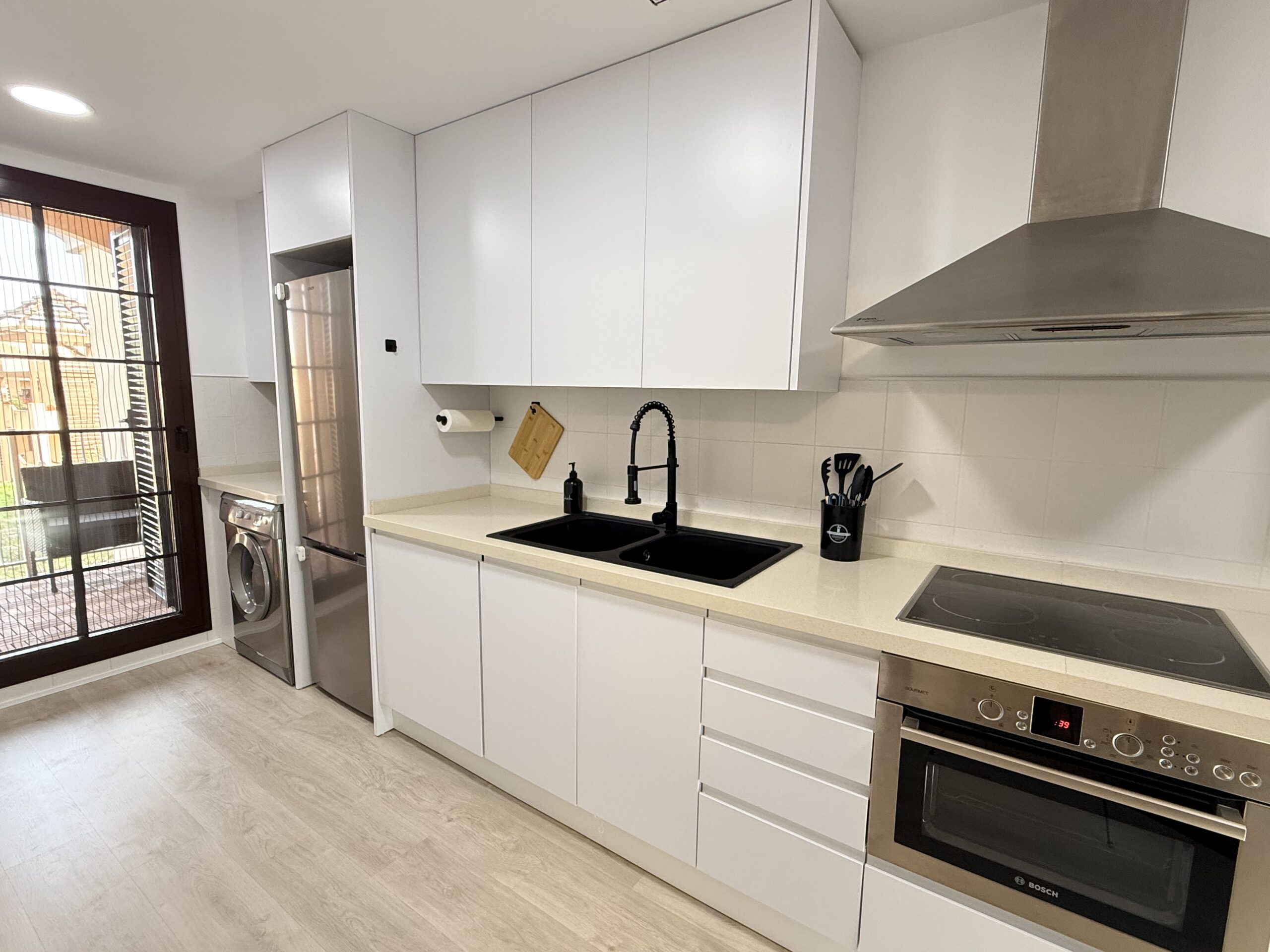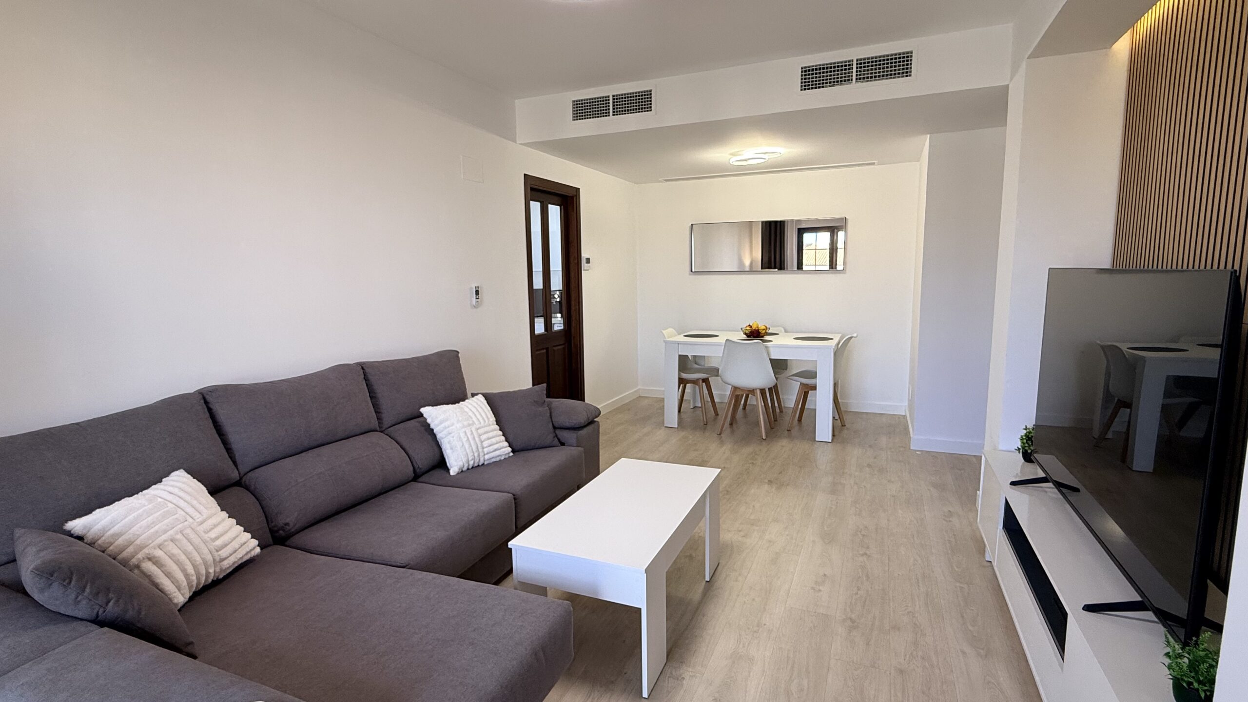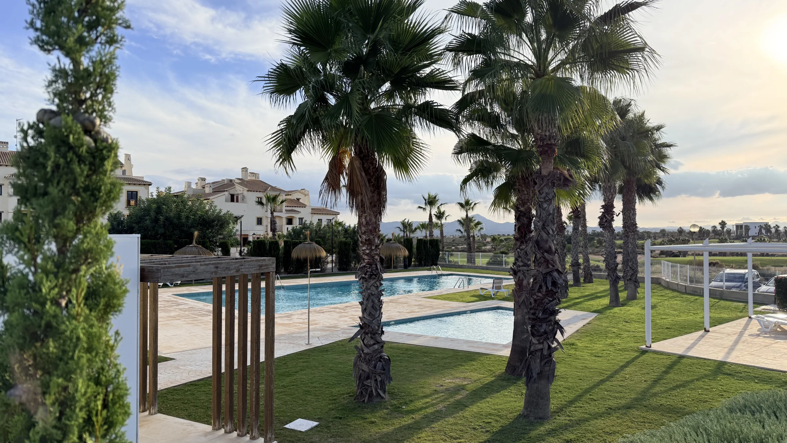 The apartment blends modern design with warm, minimalist decor and wooden flooring, creating a cozy yet elegant atmosphere. It features a spacious living room with a 65” Smart TV and a comfortable sofa bed, a fully equipped kitchen with every appliance imaginable, and a serene balcony with ambient lighting and garden views.Guests will enjoy two air-conditioned bedrooms — one with a queen-size bed and another with twin beds — plus a stylish marble bathroom stocked with toiletries and essentials.The resort offers access to golf, tennis and paddle courts, a family-friendly pool, spa services, and restaurants. Personalized attention and thoughtful details ensure every guest feels perfectly at home.